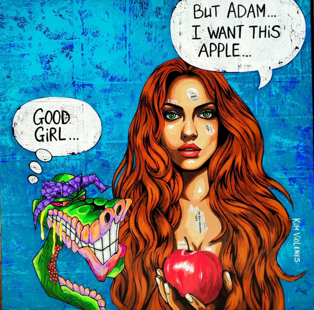 Title: Meanwhile in the garden of Eden. Inspired by a childhood drawing Kim made when she was 14 years old.