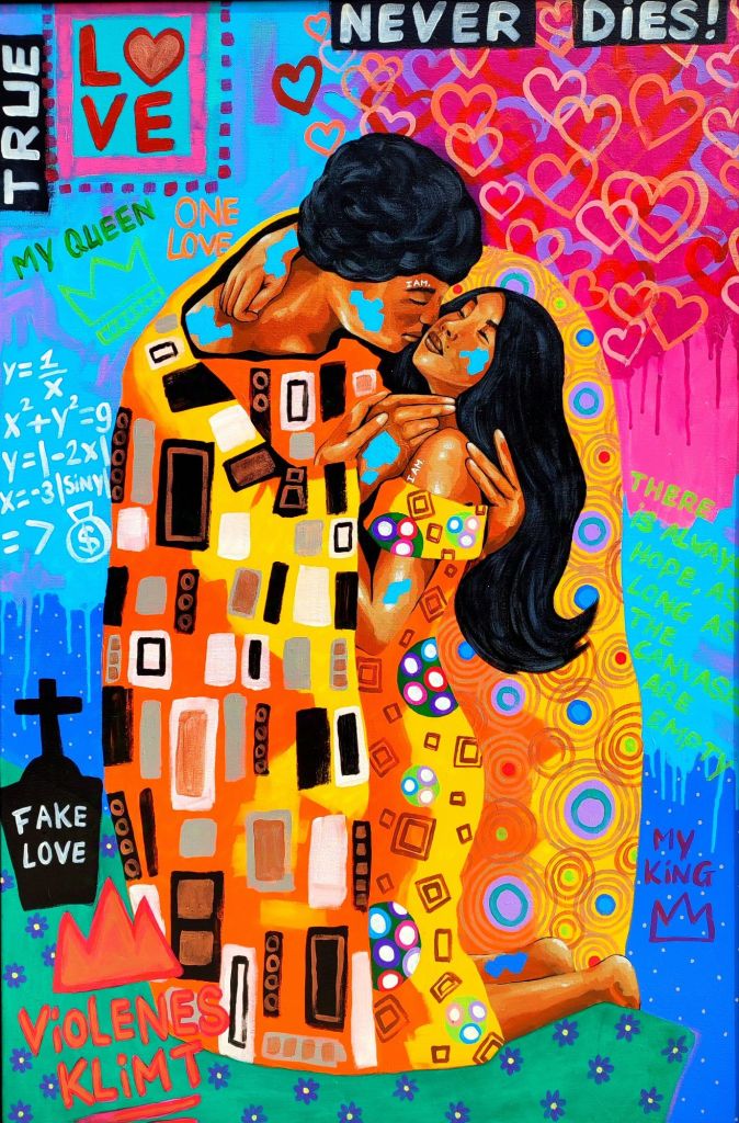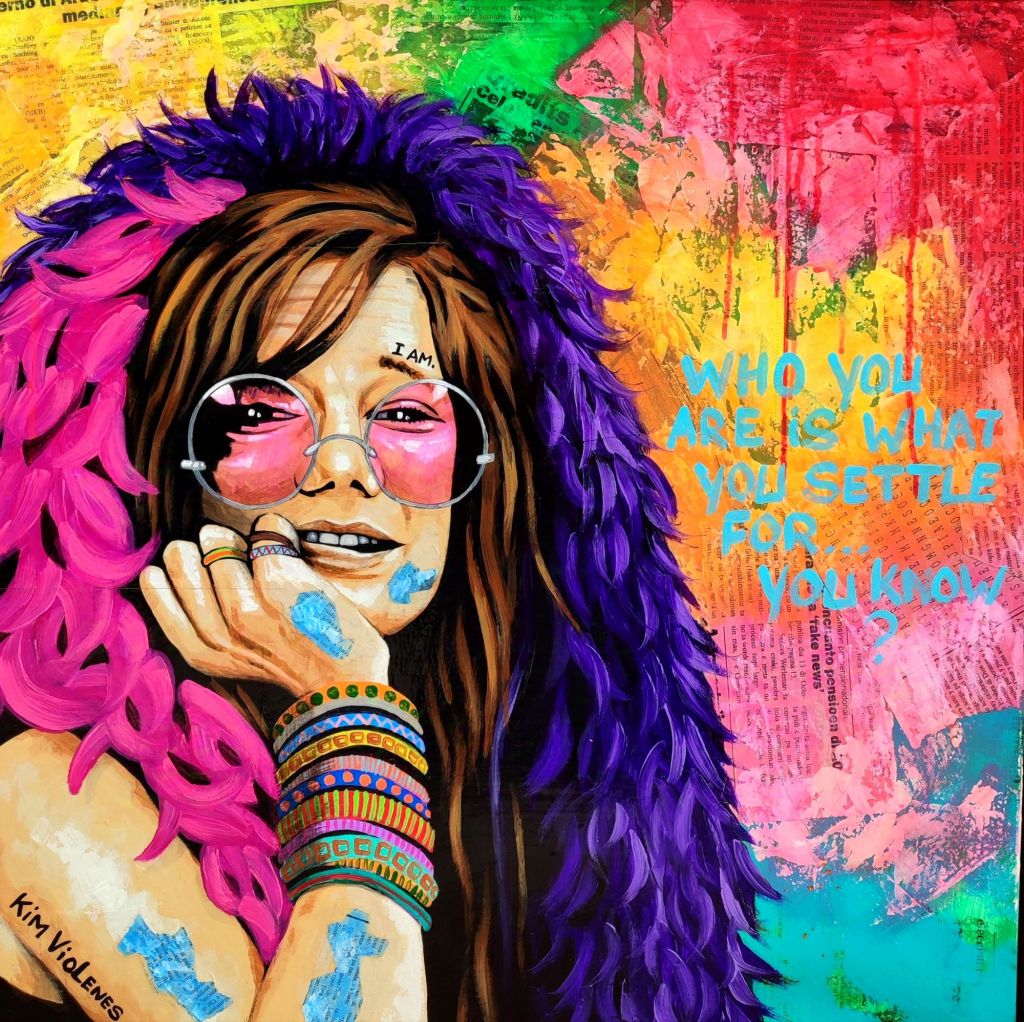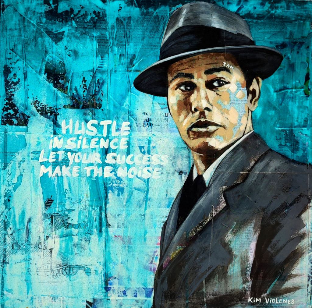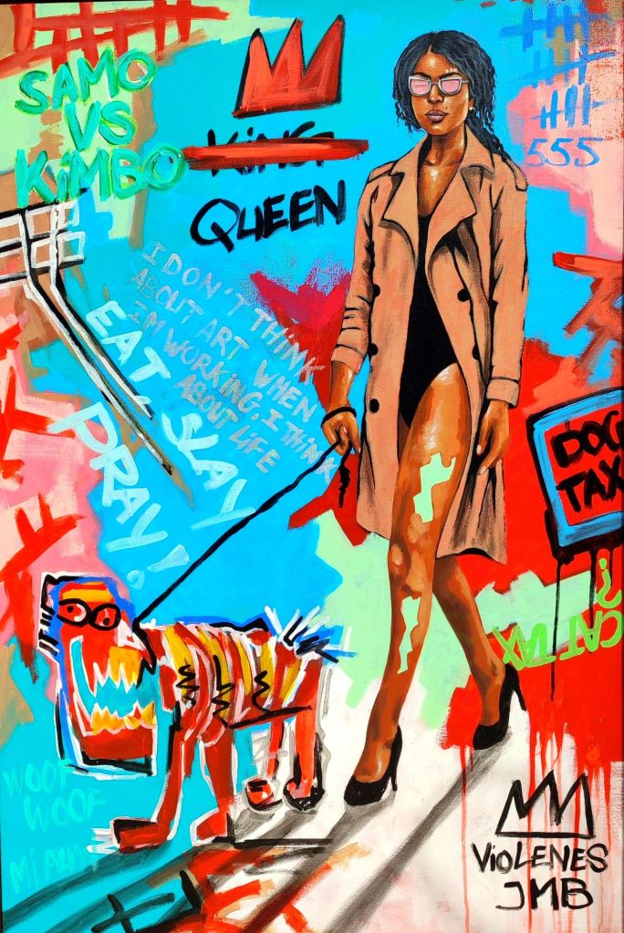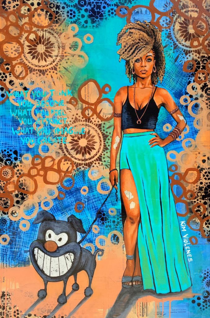 Many of the portraits include a small but meaningful detail: a beauty mark above the lip, mirroring Kim’s own, weaving a thread of personal connection into the work. Also all the characters have the “I AM” painted on their bodies.Throughout the series, she incorporates inspiring quotes that resonate with her, adding layers of thought and meaning to each piece.